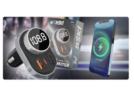 🔋 Transmiter jest jednoczenie ładowarką samochodową o mocy 30W.