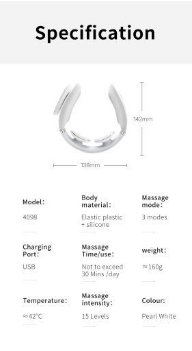 - Zapewnia ulgę w bólu i stymuluje zesztywniałe mięśnie szyi. Posiada 2 wbudowane elektrody stymulujące z technologią TENS i EMS.