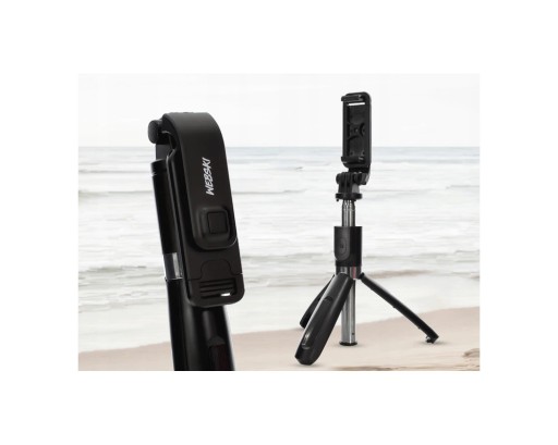 Pilot umieszczony jest w rękojeści i możesz go w łatwy sposób wyjąć, aby użyć go przy np. zdjęciu grupowym podczas używania kija jako Statyw TriPod. Posiada on zasięg do 10 metrów i jest kompatybilny z systemami Android 4.2.2 oraz iOS 5 i ich nowszymi wersjami.