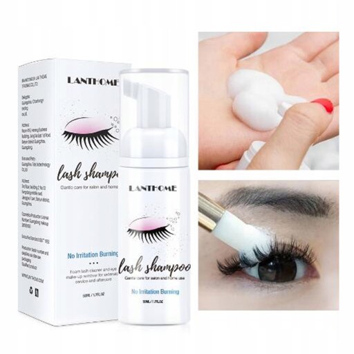 - 1. Bardzo delikatna, lekka, beztłuszczowa formuła, która skutecznie usuwa makijaż oczu i powiek, nie osłabiając przyczepności przedłużonych rzęs. Nasz zestaw premium zawiera piankę do kąpieli/szampon do rzęs, szczoteczkę do tuszu do rzęs i szczoteczkę do oczyszczania.
