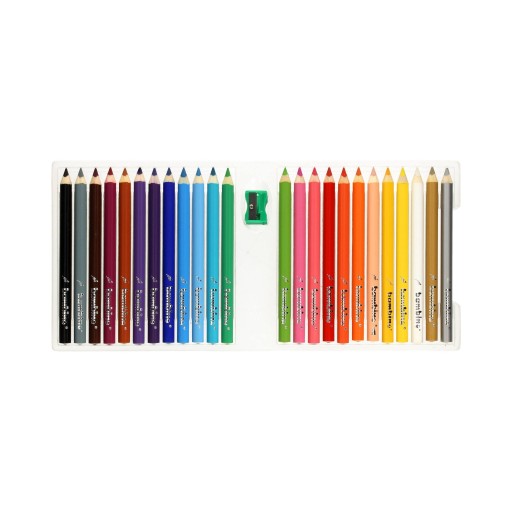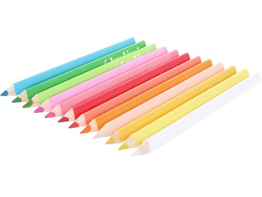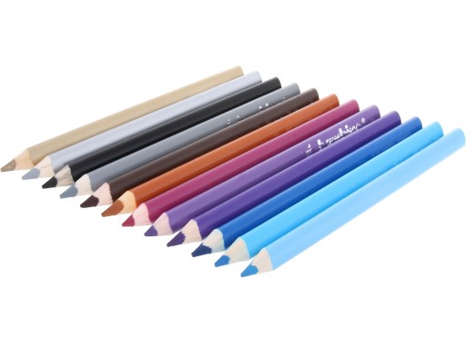 - Wysokiej jakości kredki z glinki kaolinowej w drewnianej oprawie o trójkątnym przekroju.