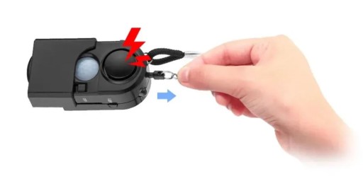 Wbudowany czujnik PIR czujka ruchu - która uruchamia alarm gdy np ktoś otworzy szufladę, torebkę czy inne chronione miejsce