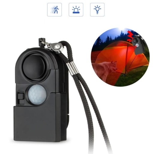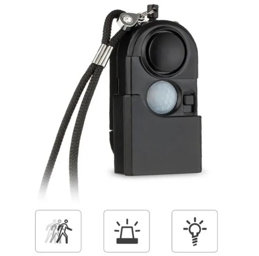 TURYSTYCZNY PRZENOŚNY MINI CZUJNIK RUCHU PIR Z ALARMEM 120 dB - SOS LED LIGHT - ALARM BEZPIECZEŃSTWA