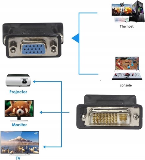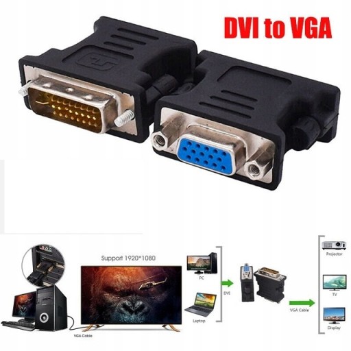 DVI-D 24+1 męski na VGA HD15 żeński umożliwia podłączenie komputera stacjonarnego, laptopa, karty graficznej wyposażonego w port DVI-D 24+1 do telewizora HD wyposażonego w VGA, monitora, projektora lub innego urządzenia odbierającego sygnał oraz obsługuje rozdzielczość do 1080P.