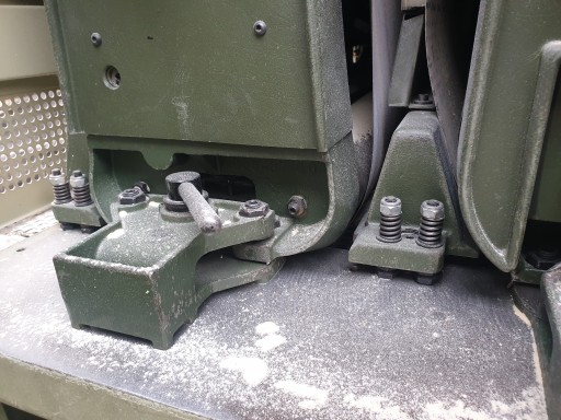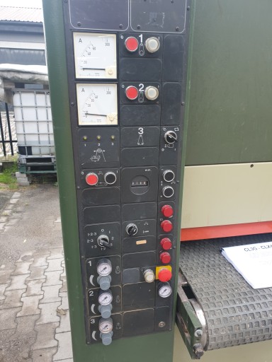 1)pierwsza taśma walec metalowy ryflowany.2)walec gumowy ryflowany.3)trzewik z odskokiem i doskokiem.Maszyna wyposażona w dwa silniki napędowe ,pierwszy agregat 18,5 kw drugi i trzeci agregat silnik 11 kw ,szlifierka posiada oscylacje taśmy szlifującej sterowaną ma fotokomórkę .Każdy agregat w maszynie załączany z pulpitu dowolna konfiguracja szlifowania możliwość wyłączenia poszczególnych agregatów.Szlifierka wyposażona w miernik wstępny materiału,posiada także stoły podawcze i odbiorcze z rolkami po 4 sztuki przód i tył.Obwód taśmy to 2150 waga maszyny 2800 kg .Maszyna z dokumentacją w razie pytań proszę o t.e.l Cena Brutto 6o4223061