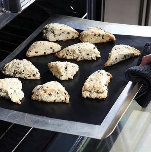 Niezwykle przydatne akcesorium do pieczenia i smażenia wielokrotnego użytku. Maty zostały wykonane z włókna szklanego pokrytego teflonem, dzięki temu posiadają dużą wytrzymałość termiczną aż do 260°C. Zakres pracy w temperaturze od -60° do 260°C pozwala na tradycyjne grillowanie, smażenie czy pieczenie.