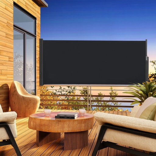 Pionowa markiza boczna (przeciw promieniom UV) wiatroszczelna, odporna na warunki atmosferyczne i trwała. Chroni przed słońcem, wiatrem i wzrokiem sąsiadów. Ciesz się niezakłóconym śniadaniem na tarasie.