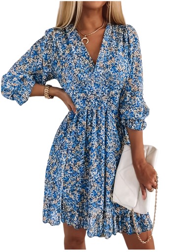 Kwiatowy wzór w połączeniu z dekoltem w serek tworzy niezapomniany letni look, który przyciąga uwagę i emanuje pozytywną energią.