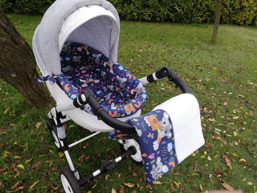 - Uniwersalny wkład, pasuje do większości wózków dziecięcych, wykonany z atestowanych tkanin jest miękki , ciepły i miły w dotyku. Wyłóg posiada wszyty ściągacz z gumy co umożliwia dopasowanie go do obwodu gondoli. Dodatkowo wszyte pasy , z których można wywiązać kokardy służą do regulacji długości, a przy tym nasza gondola wygląda bardzo wyjątkowo i niepowtarzalnie.