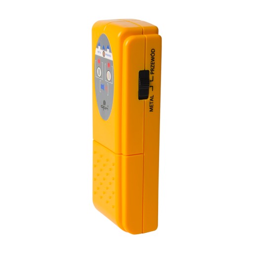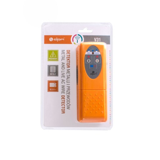 Detektor metalu i przewodów elektrycznych w ścianach i stropach. Zasięg detekcji: metal - do 4 cm, przewody - do 8 cm. Sygnalizacja dźwiękowa. Zasilanie: DC 9 V. Opakowanie: blister