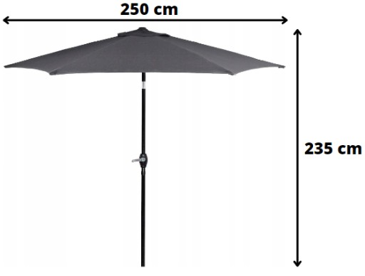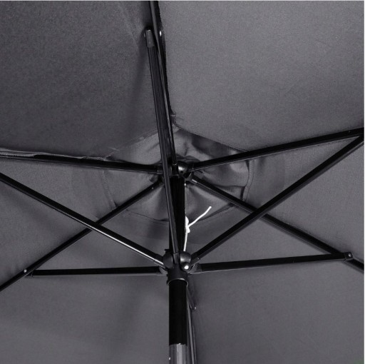 Stelaż parasola został wykonany tak, aby był praktyczny. Mechanizm korbowy, jest prosty w użytkowaniu i znacząco ułatwia rozkładanie oraz składanie parasola. Wystarczy przekręcić korbą kilka razy i czasza w pełni osłoni przed słońcem stół czy leżaki.