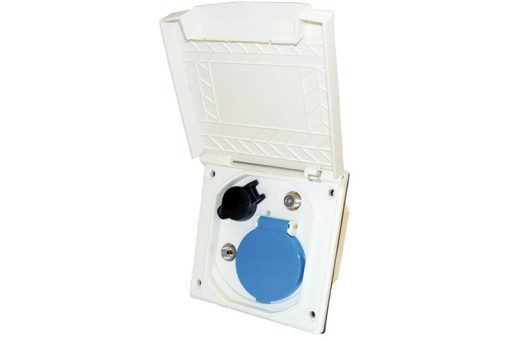 GNIAZDO ELEKTRYCZNE ZEWNĘTRZNE DO KAMPERA PRZYCZEPY KEMPINGOWEJ SAT TV 230V