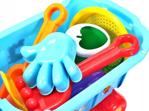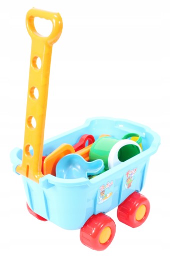 Wózek jest doskonałym uzupełnieniem zabawek, może służyć do ich transportowania lub piasku.