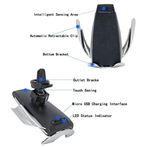 UCHWYT SANOCHODOWY NA TELEFON Z ŁADOWARKĄ INDUKCYJNĄ BEZPRZEWODOWĄ QI
