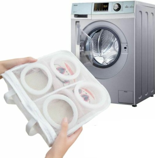 Praktyczny worek, siatka do prania obuwia. Doskonale chroni buty przed zniszczeniem podczas prania w pralce automatycznej.