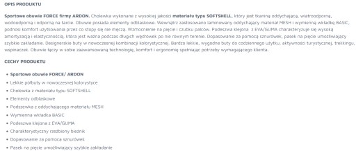 ► Obuwie charakteryzuje się wytrzymałością i niezawodnością przy czym jest bardzo wygodne.