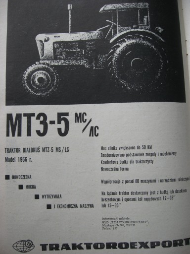 MECHANIZACJA ROLNICTWA Traktor Białoruś MTZ3-5 - reklama, mechaniczne paszarnie w chlewniach