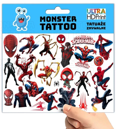 TATUAŻE ZMYWALNE TYMCZASOWE DLA DZIECI DZIECIĘCE SPIDERMAN WZORY ORYGINALNE
