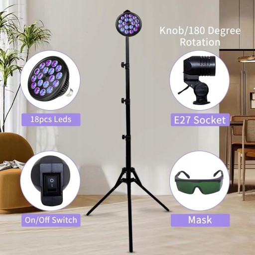 2. REGULOWANY STATYW: Dzięki konstrukcji statywu wysokość tej lampy opalającej można regulować w zakresie od 38,5 do 78,7 cala, aby dopasować ją do różnych wymagań.