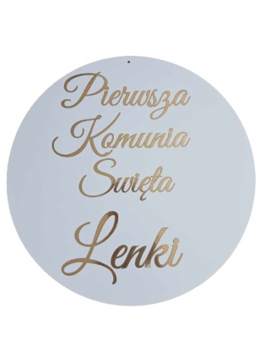 Drewniana dekoracja DWUSTRONNIE BIAŁA z doklejanym napisem w kolorze ZŁOTYM.