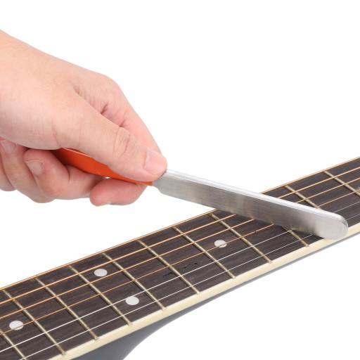 1. Pilnik służy do polerowania i naprawy progów gryfu gitary. Do pomiaru nierówności progu można użyć linijki poziomującej.