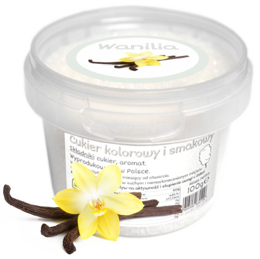 Pragniemy przedstawić naszą ofertę - cukier 100g w wiaderku, biały o smaku i zapachu wanilii.