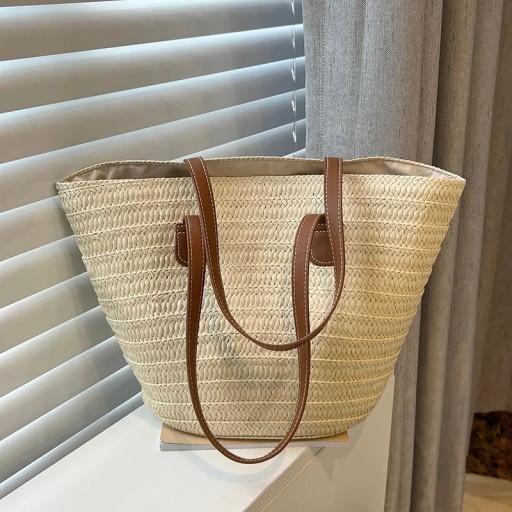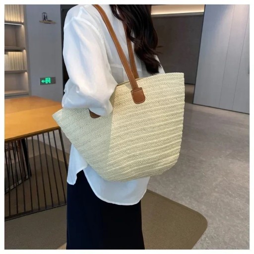 TOREBKA DAMSKA WIKLINOWA SŁOMIANA TORBA SHOPPERKA NA ZAKUPY NA PODRÓŻ NA RAMIĘ DUŻA POJEMNOŚĆ BOHO