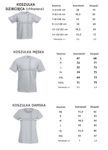 Sprawdź Dokładnie WYMIARY koszulek - w TABELI ROZMIARÓW !