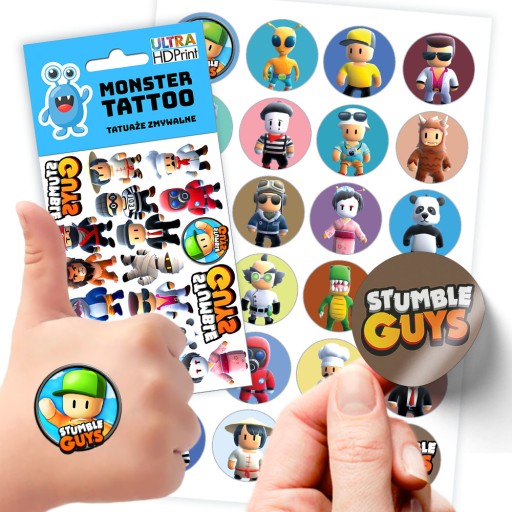 ZESTAW NAKLEJKI + TATUAŻE DLA DZIECI DZIECIĘCE STUMBLE GUYS JAKOŚĆ