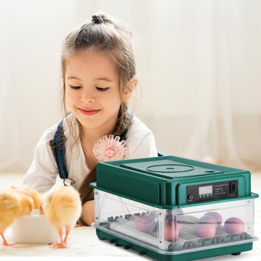 Inkubator do jaj jest w pełni automatyczny, posiada kontrolę temperatury, automatyczne obracanie jaj i uzupełnianie wody, co czyni go łatwym w użyciu.