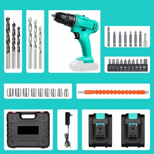 🔩Zestaw wiertarko-wkrętarek akumulatorowych 21 V z 2 akumulatorami (niebieski)