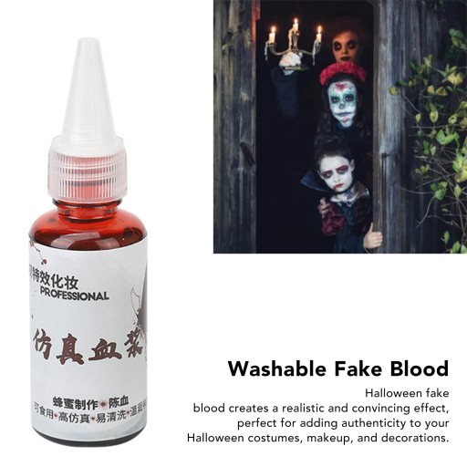 1. Autentyczny wygląd krwi: sztuczna krew zapewnia realistyczny i przekonujący efekt krwi, idealny do tworzenia krwawych makijaży i efektów specjalnych w filmach i kostiumach na Halloween.