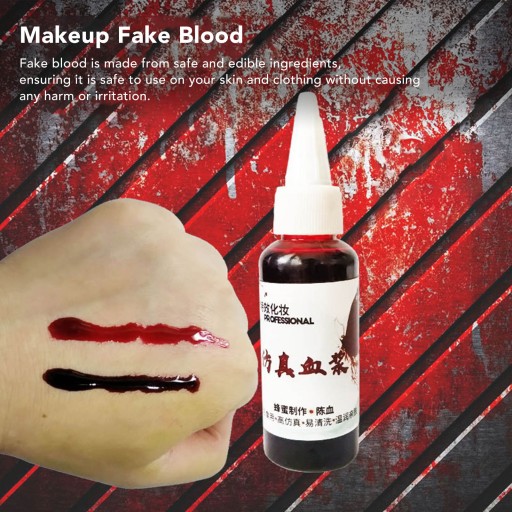 5. Płynne materiały: Wykonany z barwników spożywczych i wody, ten sztuczny rekwizyt z krwi jest całkowicie bezpieczny w użyciu na skórze, co pozwala uzyskać pożądany przerażający efekt bez żadnych szkód.