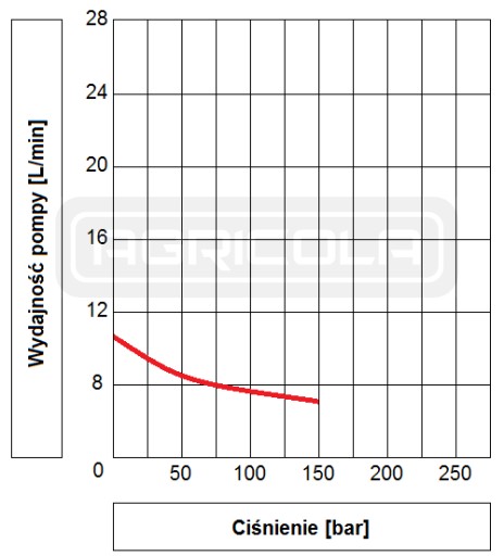 Razem ze wzrostem ciężaru ładunku zwiększa się ciśnienie przy rozładunku. Wykres przedstawia zmianę wydajności pompy w zależności od zmiany ciśnienia w układzie hydraulicznym (zdj.):