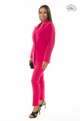 Garnitur to hit obecnego sezonu. Jest to bardzo klasyczny i ponadczasowy biznesowy komplet damski.