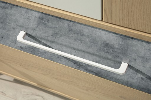 Zestaw mebli systemowych GRETA został wykonany z najwyższej jakości materiałów, dzięki czemu będzie służył przez długie lata. Meble wyróżnia nowoczesna stylistyka utrzymana w jasnych barwach. Modne połączenie bieli i betonu zostało przełamane ciepłym odcieniem dębu biszkoptowego. Dwa rodzaje uchwytów urozmaicą wnętrze ciekawym designem. System Greta posiada wiele modułów, więc wszystkie ubrania, zabawki i książki zostaną z łatwością uporządkowane.