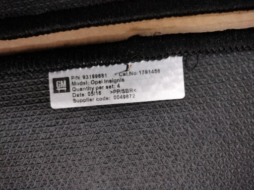 КОМПЛЕКТ ВЕЛЮРОВЫХ НАПОЛЬНЫХ КОВРИКОВ OPEL INSIGNIA A 2009-2013 93199681 GM OE ОРИГИНАЛ