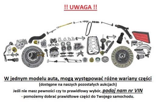 Dobieramy części po numerze nadwozia (VIN). Jeśli nie jesteś pewien czy wybrana część będzie odpowiednia do twojego samochodu, prześlij nam numer VIN.