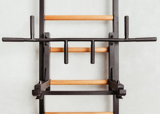 - Zestaw zawiera: drabinkę, regulowany drążek do podciągania z 6-cioma uchwytami, poręcze do ćwiczeń z podparciem pod plecy