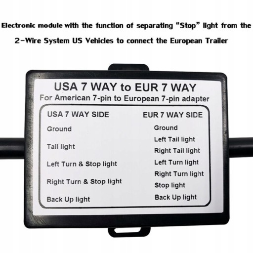 * Jeśli twój amerykański pojazd ma 7-biegunowe gniazdo ostrza RV, a twoja przyczepa Euro ma 7-stykową okrągłą wtyczkę, w której twój amerykański samochód musi oddzielić sygnały stopu i ogona, ten adapter okablowania przyczepy będzie musiał być użyty