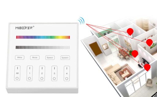 Minimalistyczny i elegancki panel dotykowy pilot przeznaczony do sterowania oświetleniem LED RGBW. Kompatybilny z produktami Miboxer/Mi-Light 2.4GHz. Umożliwia płynną zmianę koloru i jasności oświetlenia.