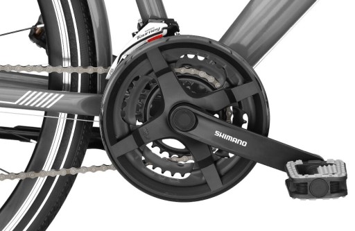 Rower trekkingowy INDIANA X-Road 1.1 D19 jest wyposażony w najwyższej jakości przerzutki przednią i tylną marki SHIMANO. Dzięki zastosowaniu aż 21 biegów możesz powoli jechać nim po zatłoczonych ulicach lub rozpędzić się na otwartym terenie. Za sprawą odpowiednich przerzutek dasz radę pokonać każde wzniesienie, nawet takie o dużym stopniu nachylenia.