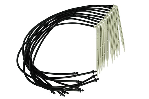Długi kątowy kroplownik patykowy 2,2l/h z wkłuwką i wężykiem 50cm Komplet 10 sztuk