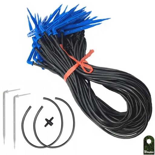Emiter kroplownik Patykowy PREMIUM w zestawie: kroplownik patykowy kątowy - 2szt dwójnik - 1szt wężyk 50cm - 2szt Komplet 10 sztuk