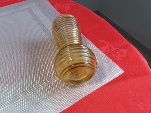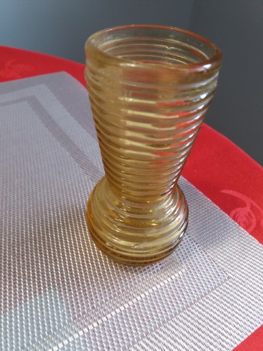 WYSOKOŚĆ 12,4CM,ŚREDNICA PODSTAWY 4,5CM,DELIKATNIE USZCZERBIONY.
