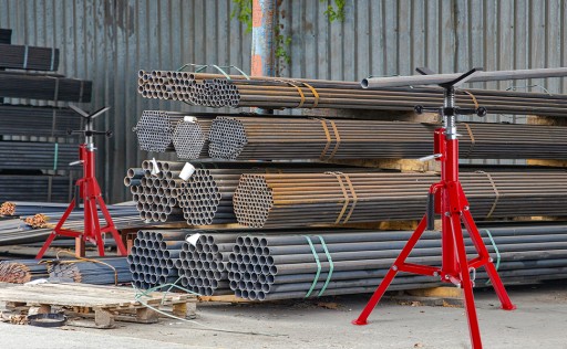 Стойка с регулируемым трубоподъемником для труб диаметром 71–131 см.