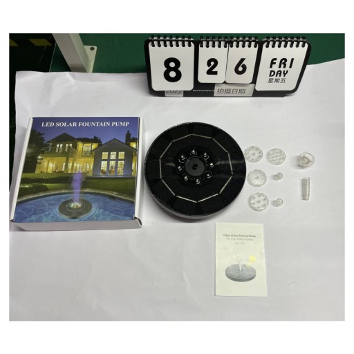 - Ogrodowa fontanna solarna przeznaczona do małych oczek wodnych i innych sztucznych zbiorników wodnych. Pompa wodna pomaga utrzymać równowagę biologiczną w oczku wodnym poprzez odpowiednie napowietrzenie wody, ciągły ruch wody zapobiega jej mętnieniu oraz zarastaniu.