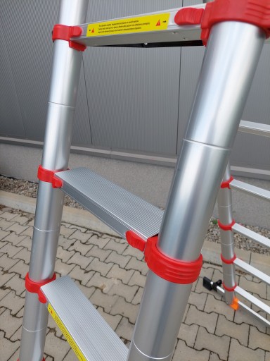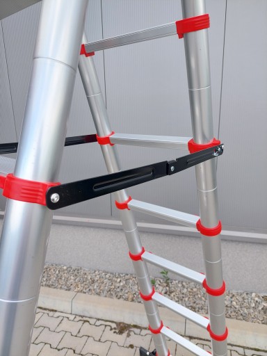 Drabina wyposażona została w dodatkowy łącznik pomiędzy szczeblami zapewniający jej sztywność i stabilność podczas pracy w pozycji drabiny malarskiej