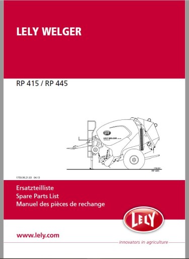 Каталог запчастей пресс-подборщика LELY WELGER RP 415 445