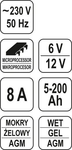 YATO PROSTOWNIK ELEKTRONICZN 6/12V 8A 5-200AH